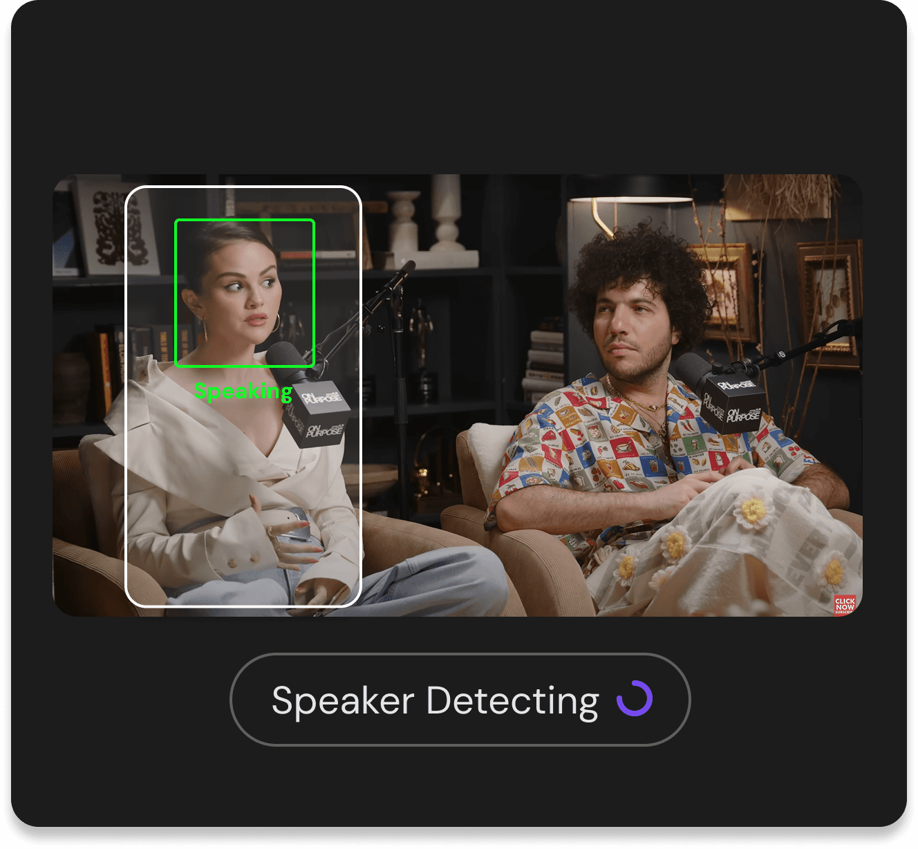 Our algorithm re-layout the extracted clips by leveraging advanced object detection and active speaker detection.